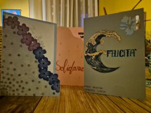 (Elisabetta Bersani) “C’è una frase di Einstein che dice: “la creativita è contagiosa, trasmettila” e l’ho riferita loro. Abbiamo cercato di mettere sia su carta che su computer tutte le emozioni con fotografie, testi e musiche. Siamo partiti con la manualità per tradurre le esperienze. In un’era come la nostra, accanto all’aspetto molto forte di umanità, con un ritorno alla manualità perduta i ragazzi hanno dimostrato di essere artisti, tutti in grado di testimoniare con la grafica, il colore e la forma. Uno studente ha suggerito il brano “C’est la vie” di Achille Lauro e, una volta esaminato, era azzeccatissimo. I nostri giovani ci fanno ammattire ed è nostro compito sollecitarli e redarguirli ma ho visto una partecipazione emotiva vera: non erano la per prendere un credito in più ma lavoravano in situazioni difficili. Anche io mi sono emozionata molto a vedere i loro occhi, le loro mani indossare guanti e mascherine per proteggere i piu fragili.  Con tutte le loro difficoltà, e sono tante, loro sono il futuro e la creatività che sta dentro e deve uscire, una volta manifestata, diventa mezzo di comunicazione per capire il mondo ed è come tuffarsi nell’infinito”.